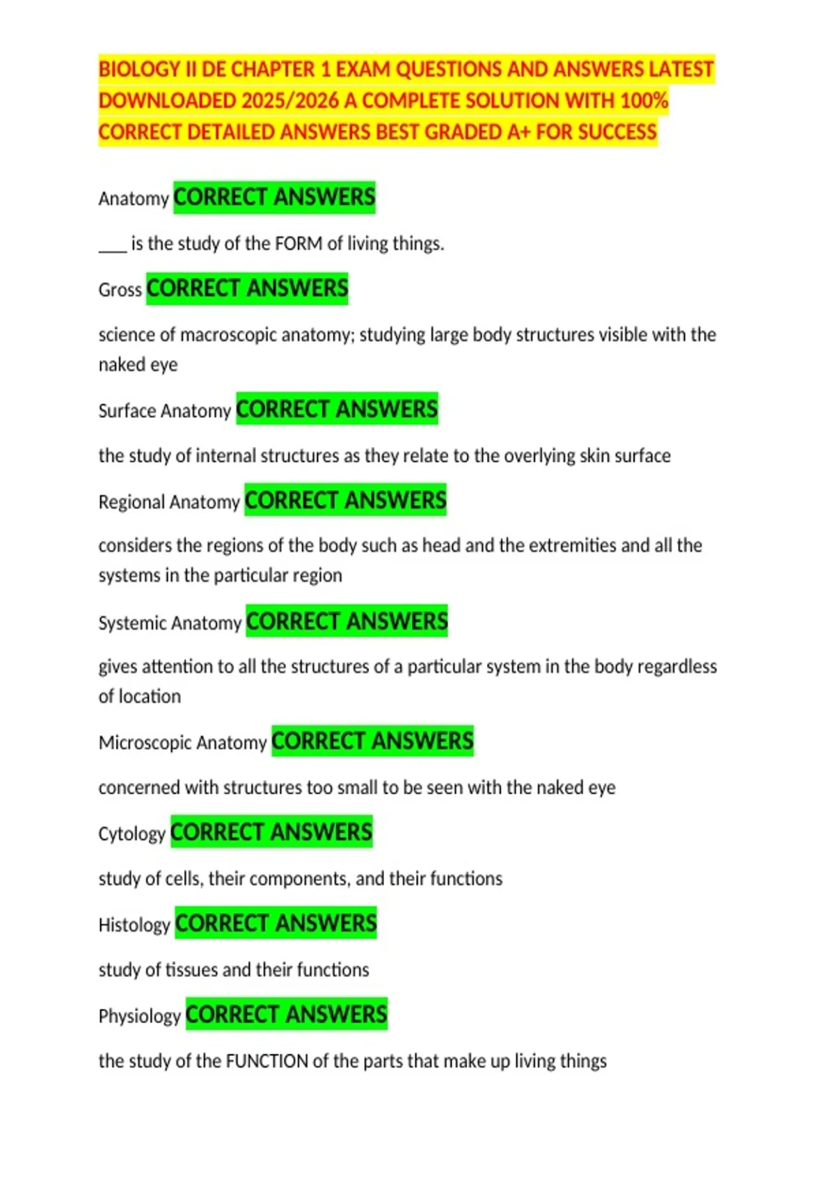 Anatomy CORRECT ANSWERS