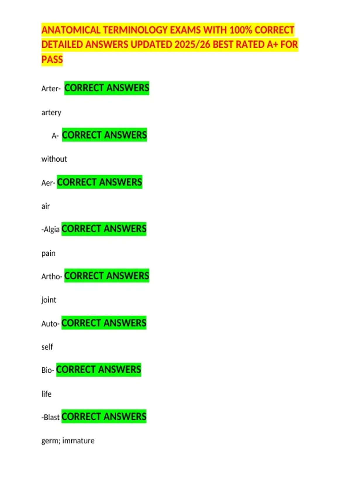 ANATOMICAL TERMINOLOGY EXAMS WITH 100% CORRECT