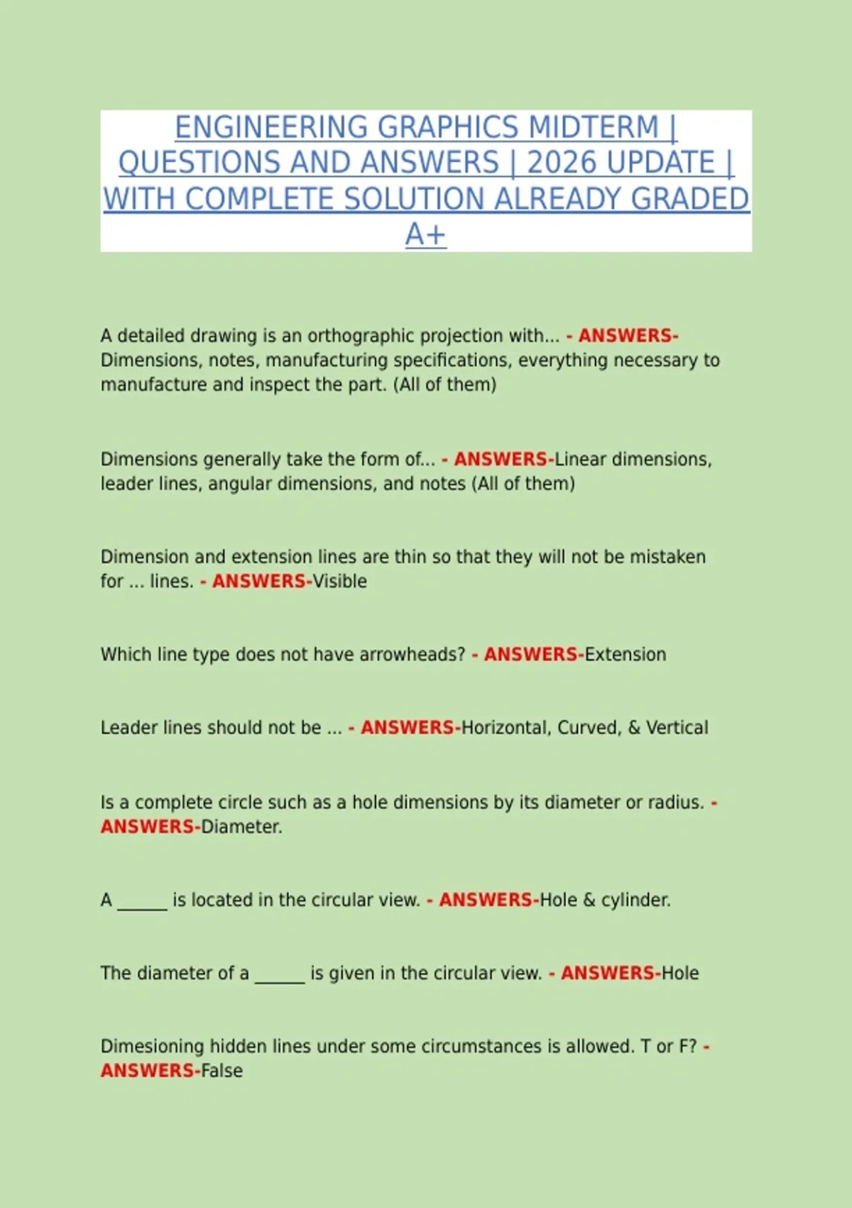 Engineering Graphics Midterm Exam (2026 Edition) – Complete Questions with Verified Solutions | A+ Graded