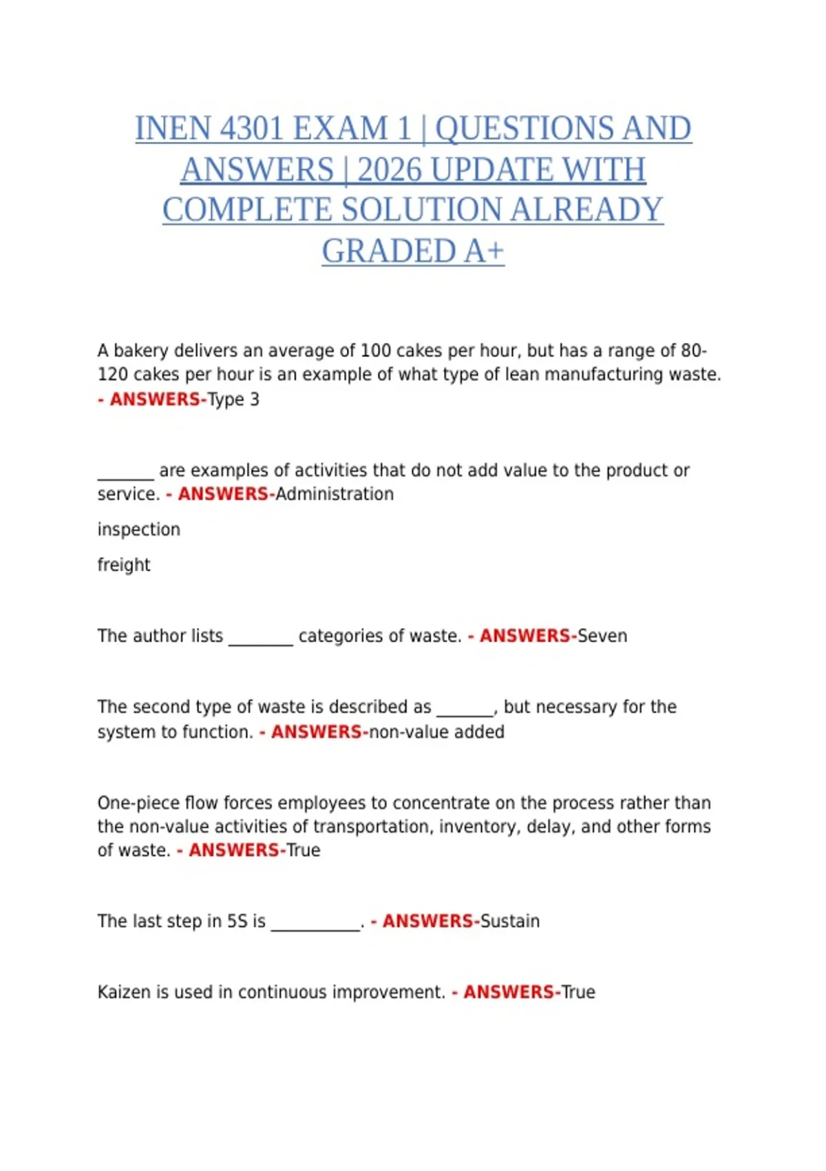of waste. - ANSWERS-True
