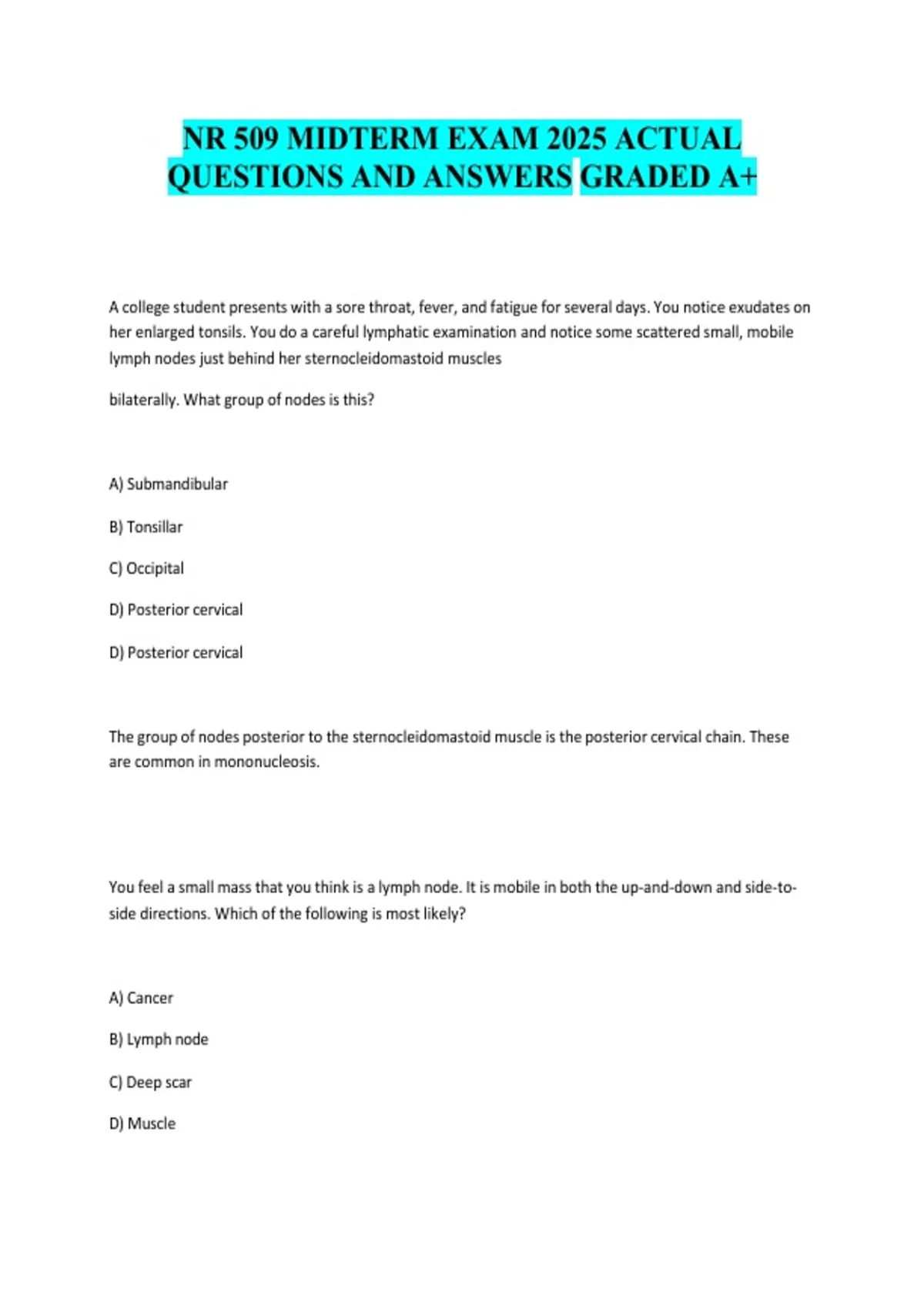 NR 509 EXAM ACTUAL QUESTIONS AND ANSWERS GRADED A+