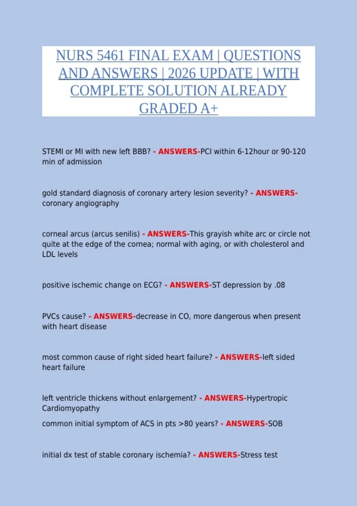 common initial symptom of ACS in pts >80 years? - ANSWERS-SOB