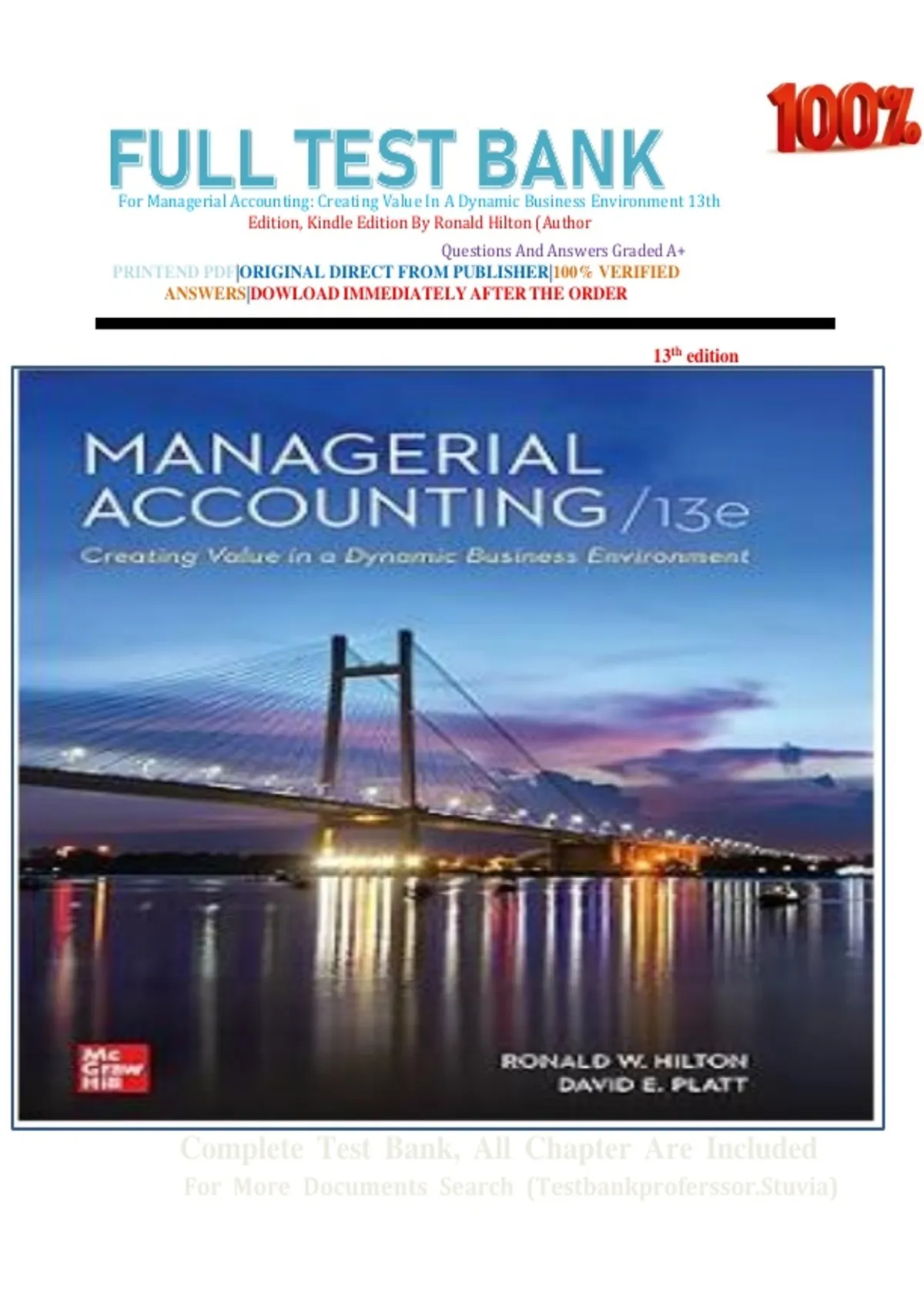 Full Test Bank For Managerial Accounting: Creating Value In A Dynamic Business Environment 13th Edition, Kindle Edition By Ronald Hilton (Author Questions And Answers Graded A+