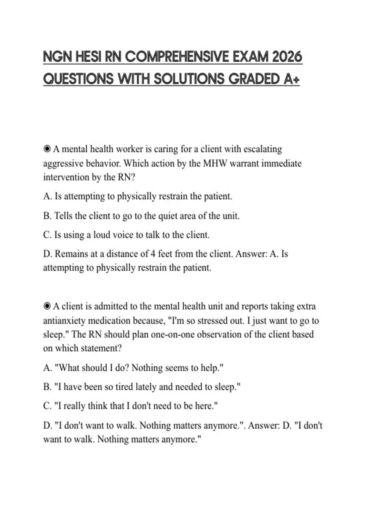 NGN HESI RN COMPREHENSIVE EXAM 2026 QUESTIONS WITH SOLUTIONS GRADED A+