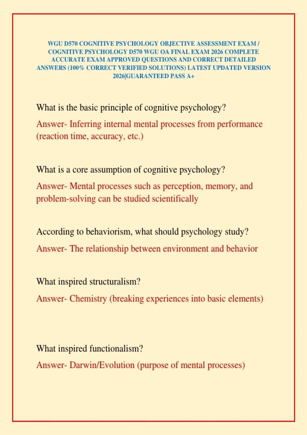 COGNITIVE PSYCHOLOGY D570 WGU OA FINAL EXAM 2026 COMPLETE