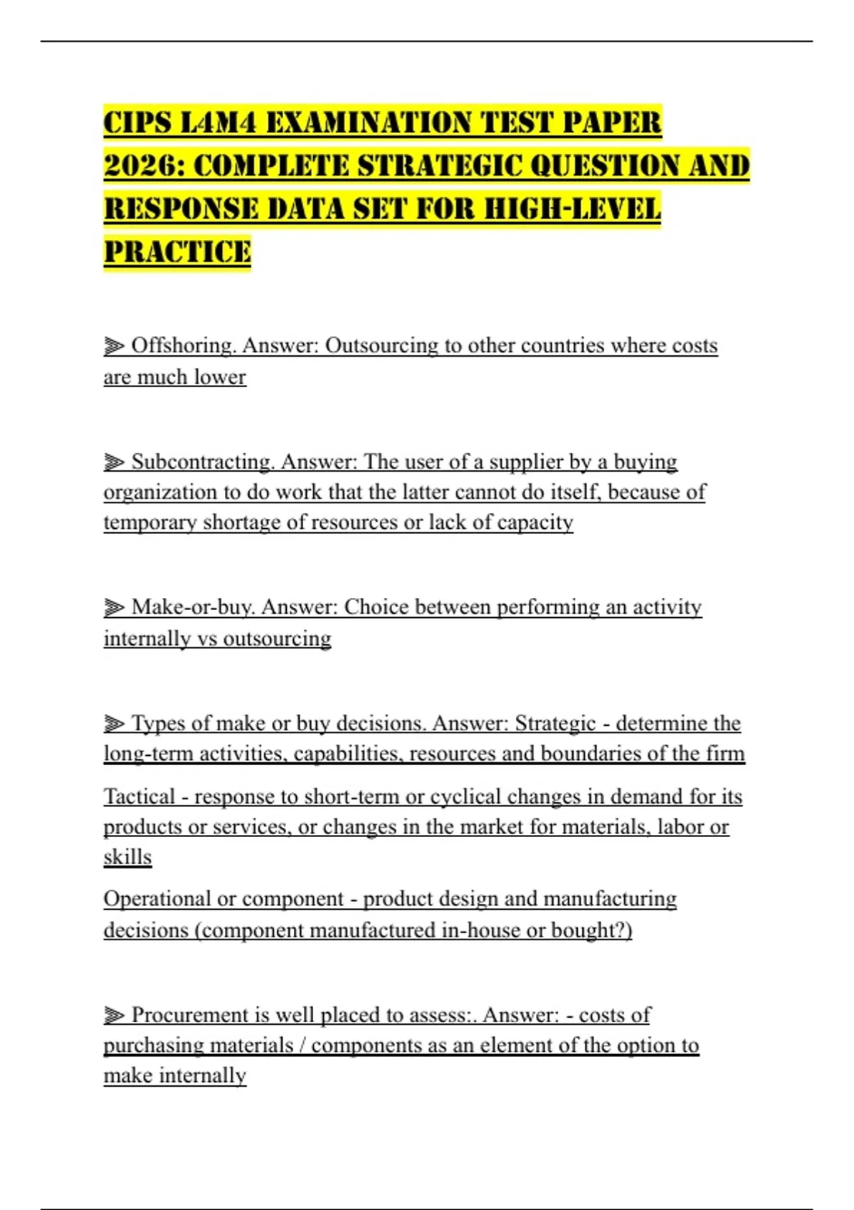 CIPS L4M4 EXAMINATION TEST PAPER 2026: COMPLETE STRATEGIC QUESTION AND RESPONSE DATA SET FOR HIGH-LEVEL PRACTICECIPS L4M4 EXAMINATION TEST PAPER 2026: COMPLETE STRATEGIC QUESTION AND RESPONSE DATA SET FOR HIGH-LEVEL PRACTICE