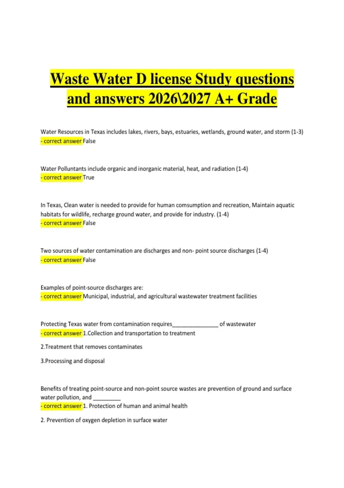 - correct answer Municipal, industrial, and agricultural wastewater treatment facilities