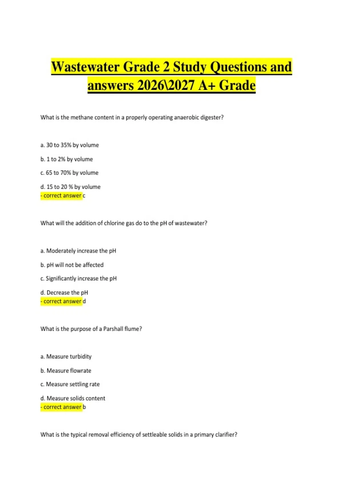 Wastewater Operator Grade 2 – Study Questions and Answers 2026–2027 | Comprehensive wastewater certification exam study guide for an A+ grade