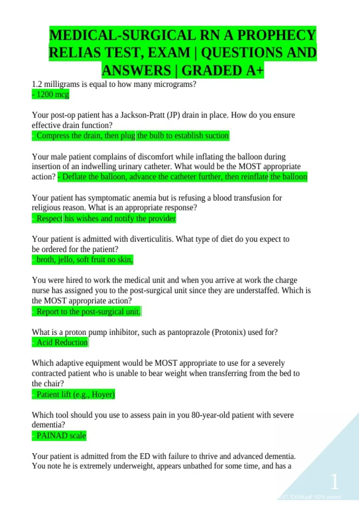 ,Page 2 of 17 MEDICAL-SURGICAL RN A PROPHECYMEDICAL-SURGICAL