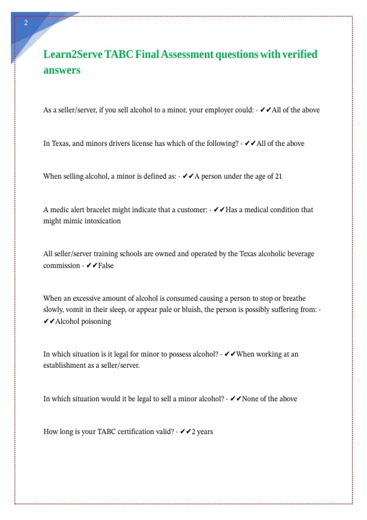 Learn2Serve TABC Final Assessment questions with verified || || || || || || ||