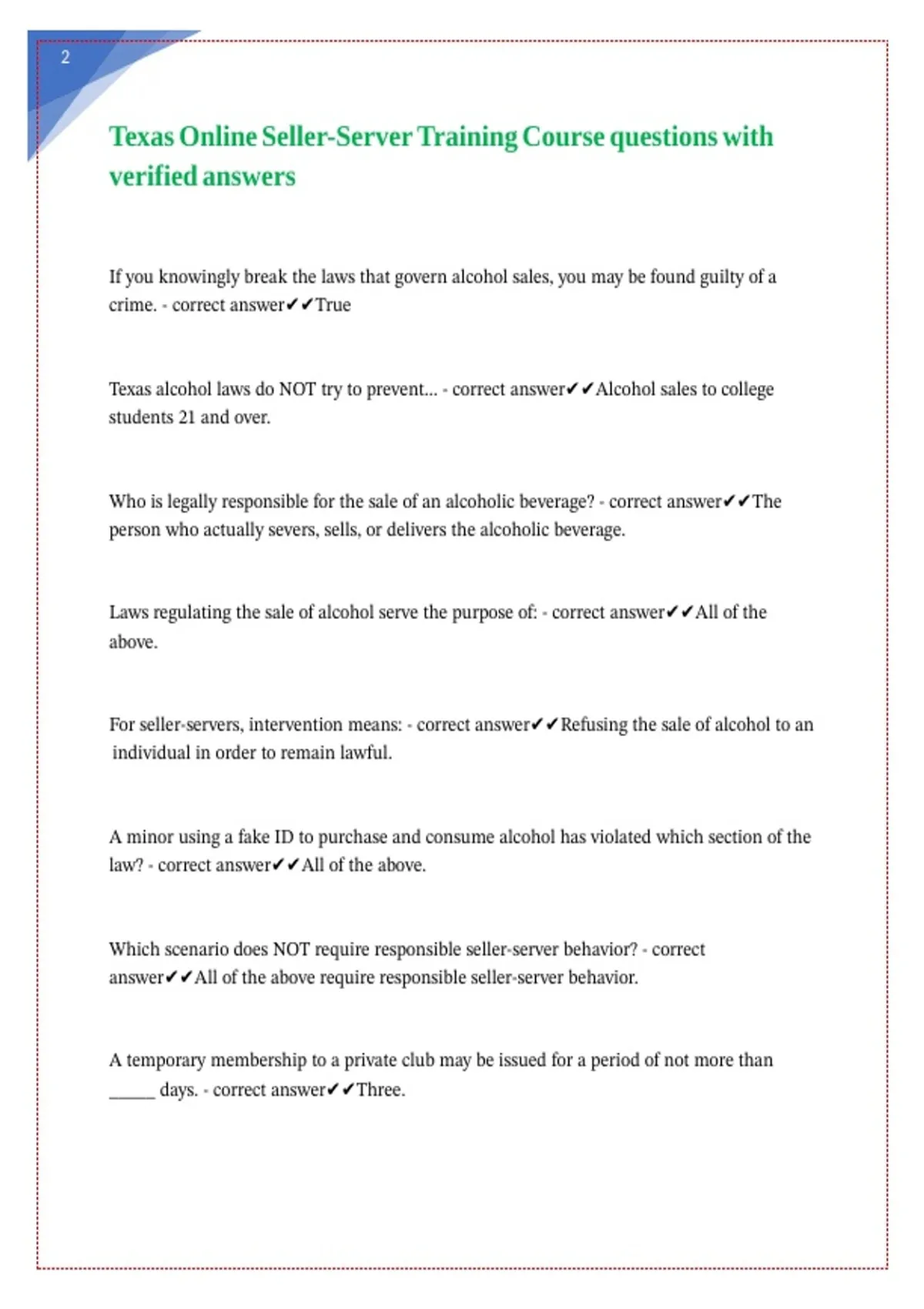 For seller-servers, intervention means: - correct answer✔✔Refusing the sale of alcohol to an