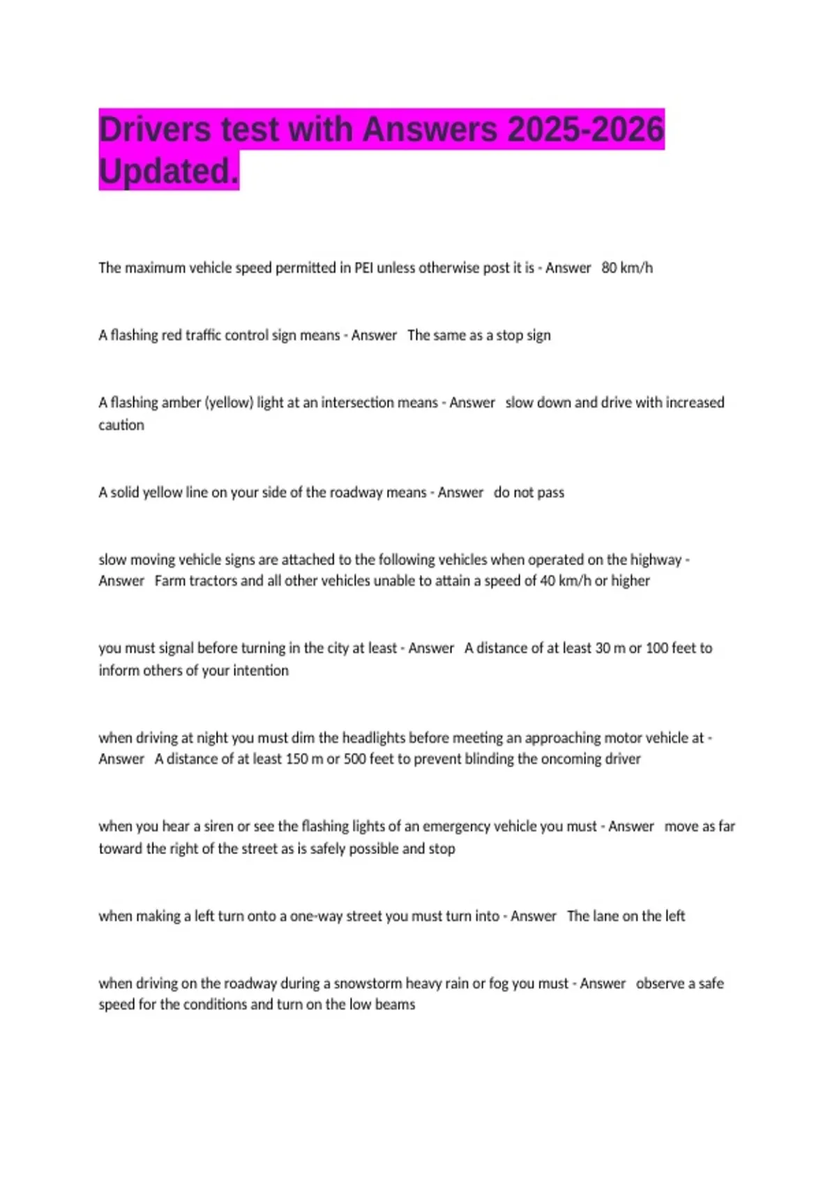 Drivers test with Answers Updated