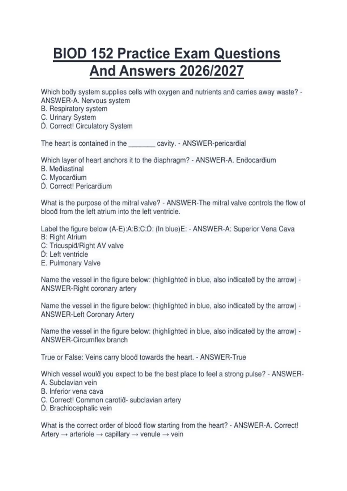 BIOD 152 Practice Exam Questions And Answers 2026/2027