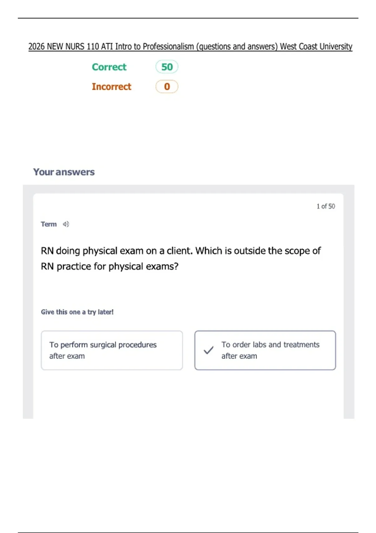 2026 NEW NURS 110 ATI Intro to Professionalism (questions and answers) West Coast University