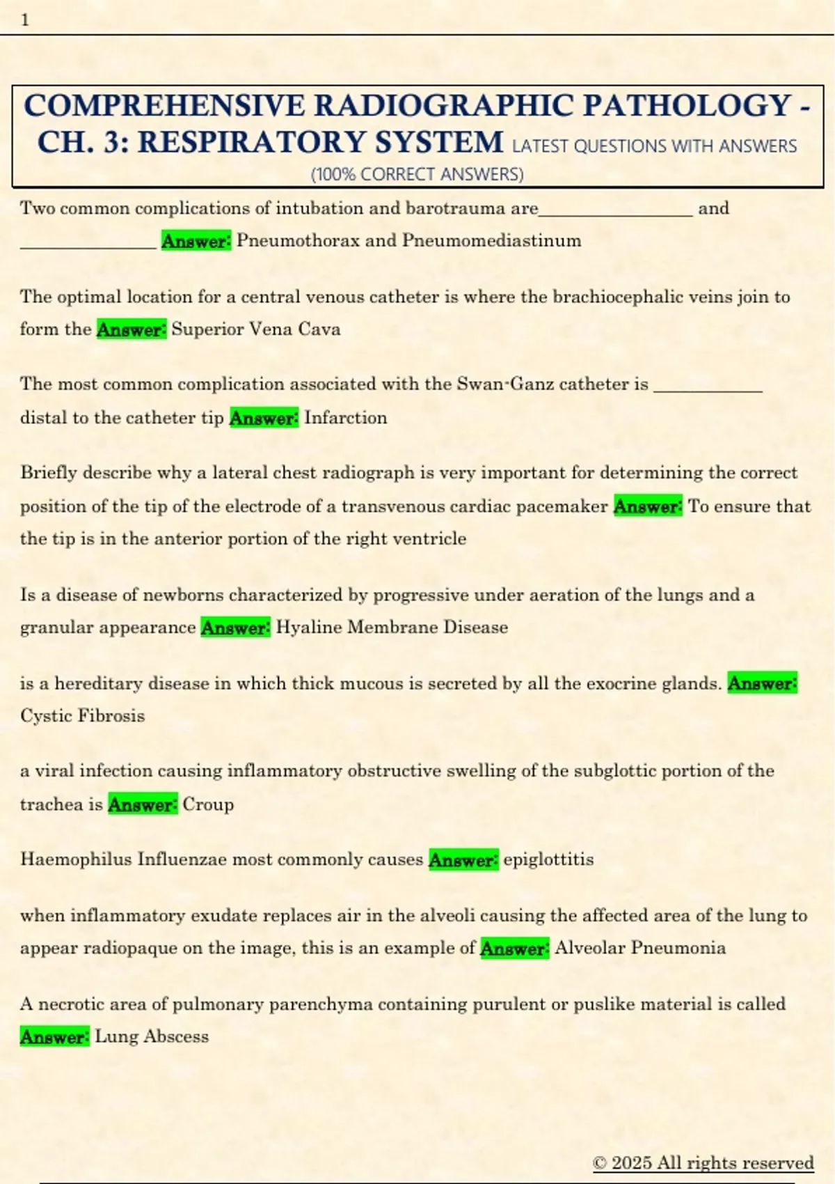 CH. 3: RESPIRATORY SYSTEM LATEST QUESTIONS WITH ANSWERS