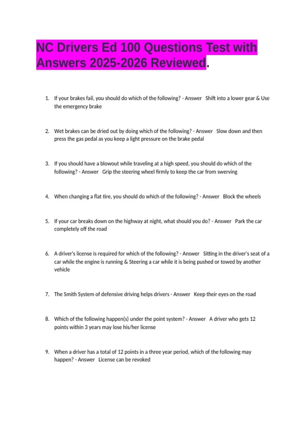 8. Which of the following happen(s) under the point system? - Answer A driver who gets 12