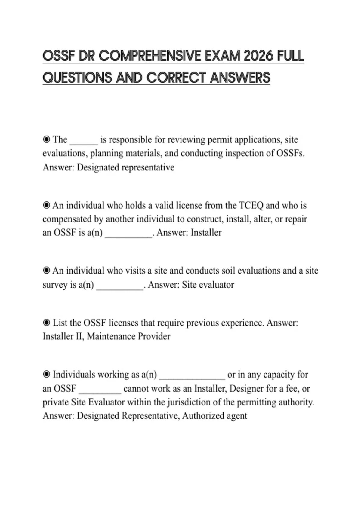 OSSF DR COMPREHENSIVE EXAM 2026 FULL QUESTIONS AND CORRECT ANSWERS