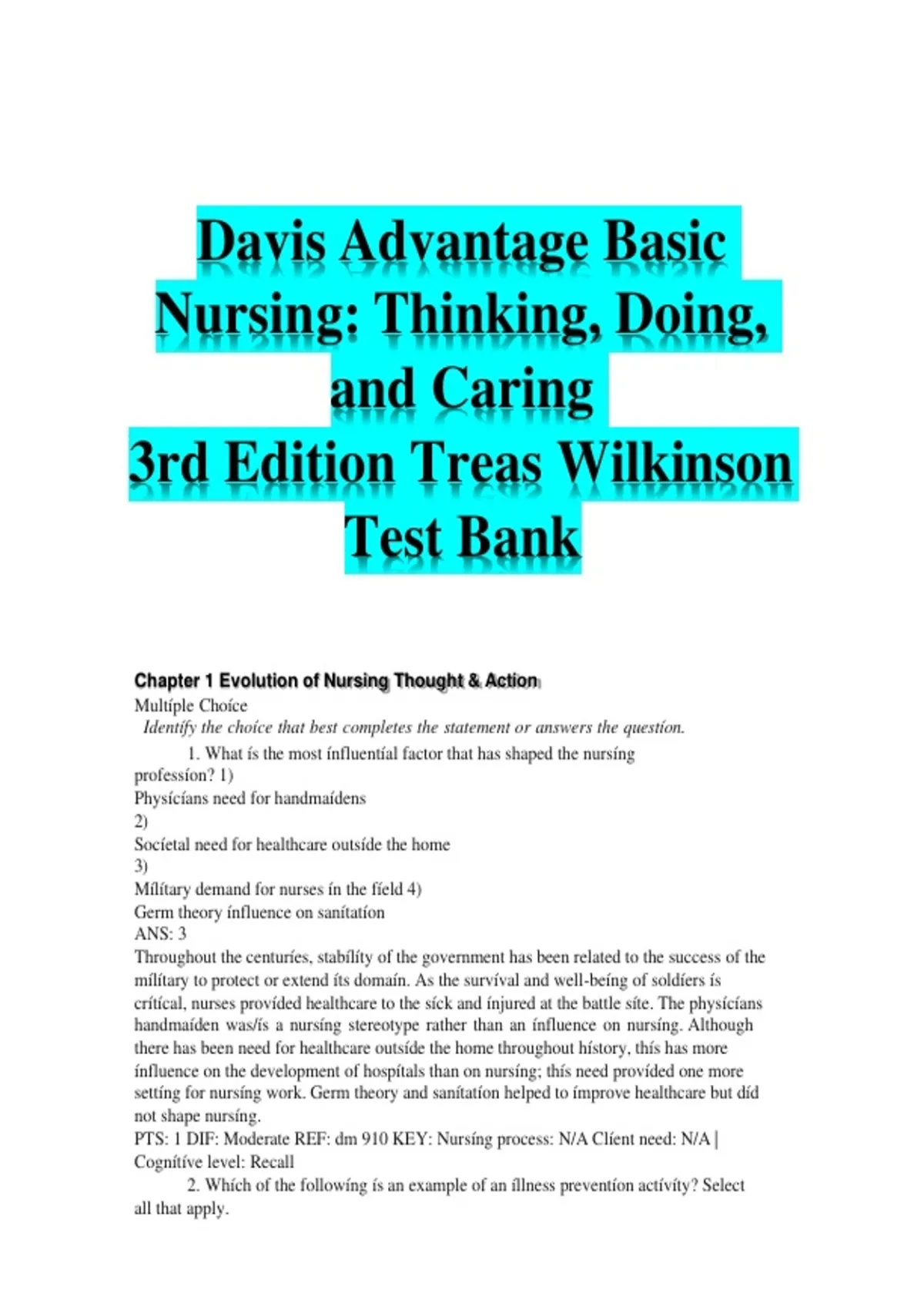 Davis Advantage Basic Nursing: Thinking, Doing, and Caring (3rd Edition) by Treas & Wilkinson | Complete Test Bank