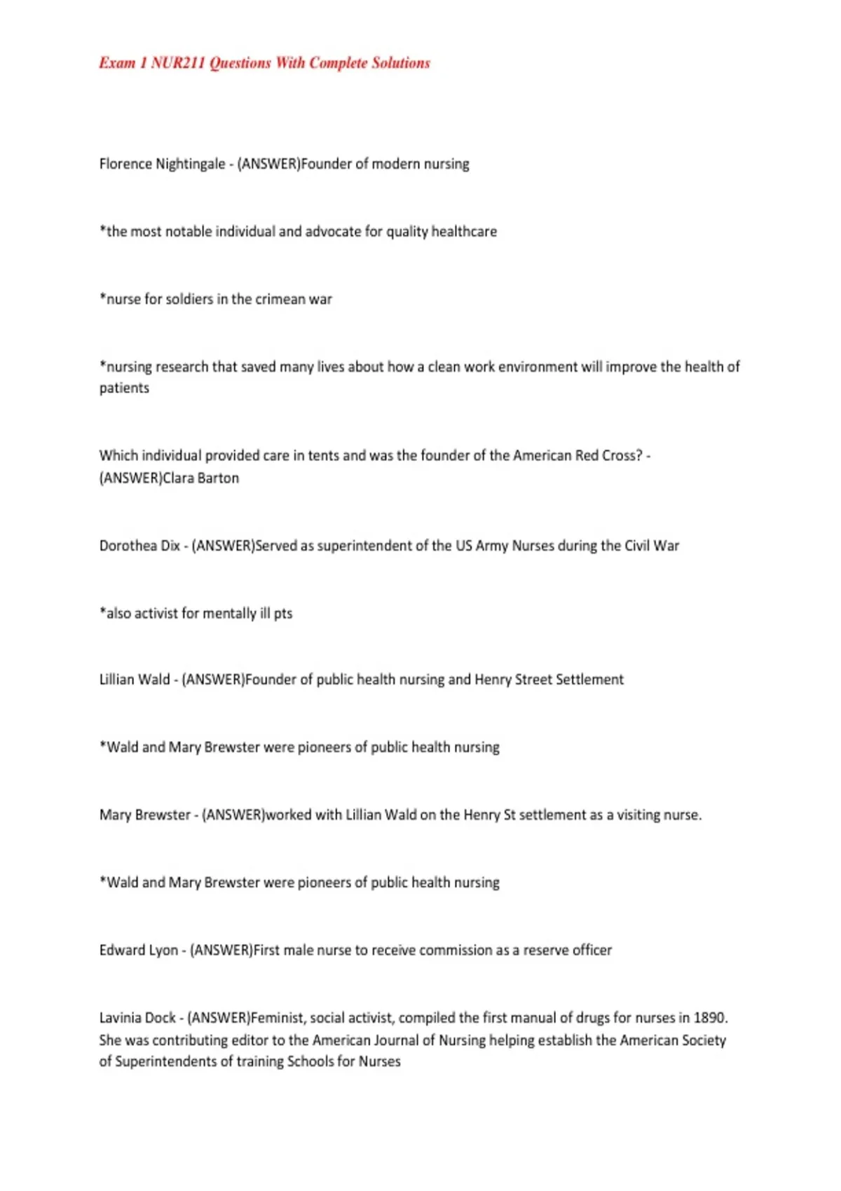 Florence Nightingale - (ANSWER)Founder of modern nursing