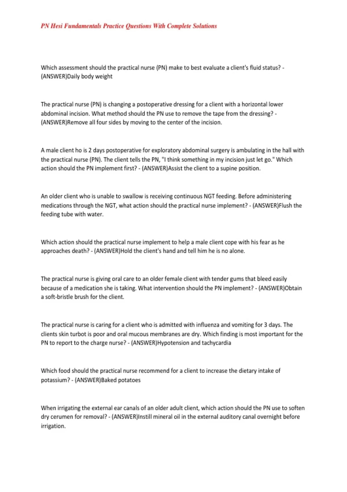 , PN Hesi Fundamentals Practice Questions With Complete Solutions