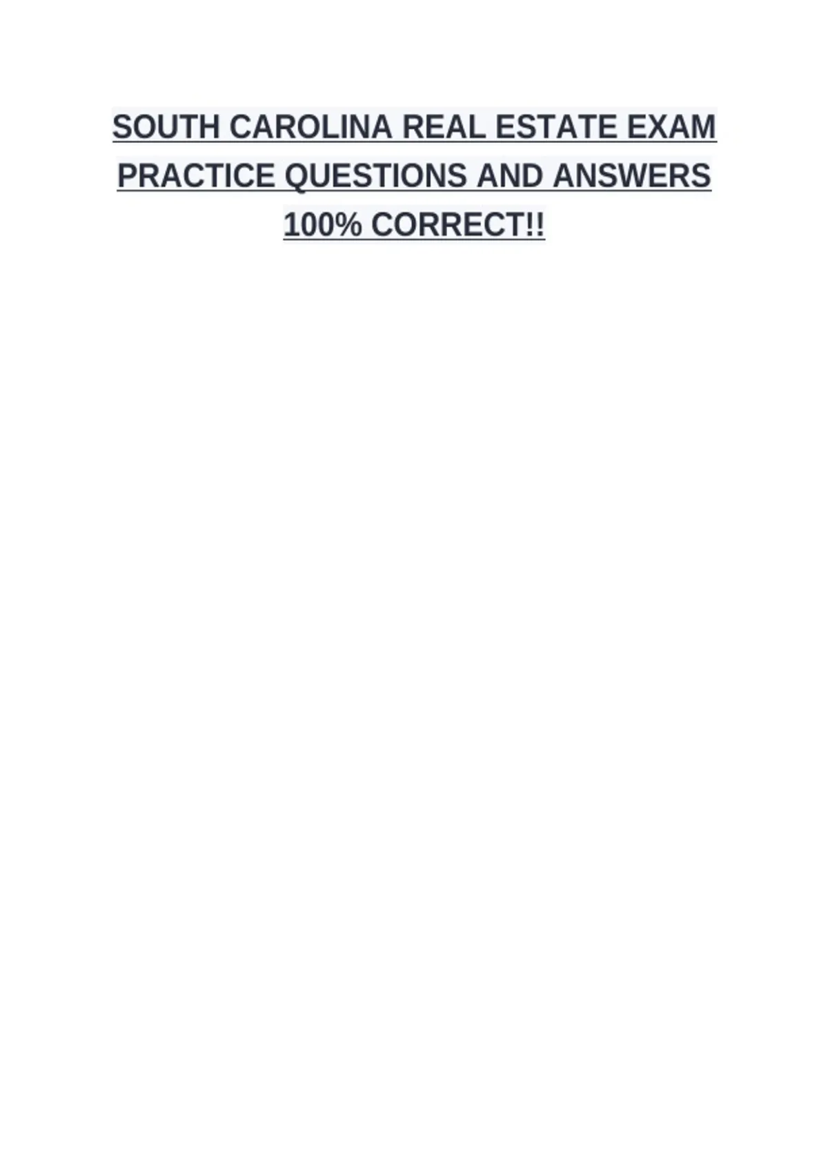 SOUTH CAROLINA REAL ESTATE EXAM PRACTICE QUESTIONS AND ANSWERS 100% CORRECT!!