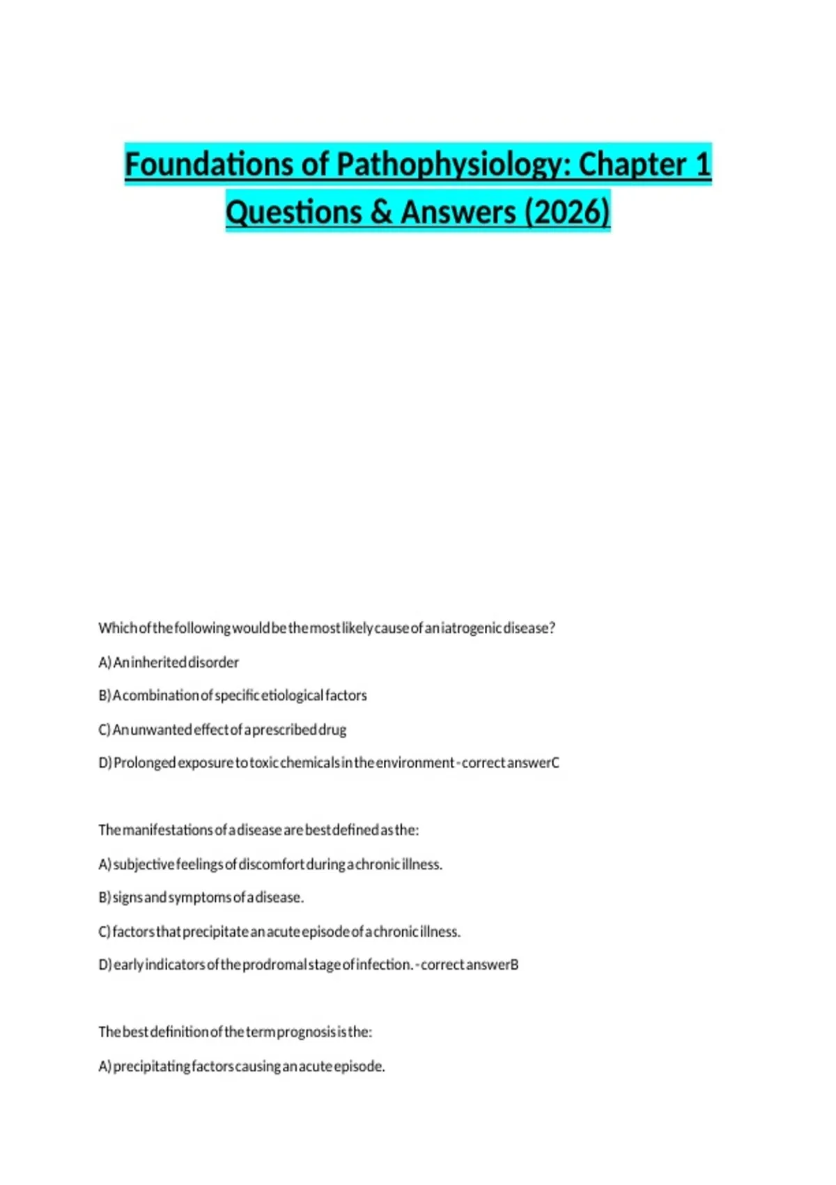 Foundations of Pathophysiology: Chapter 1 Questions & Answers (2026)