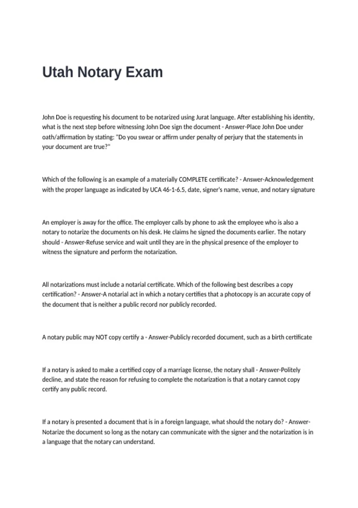 Utah Notary Exam