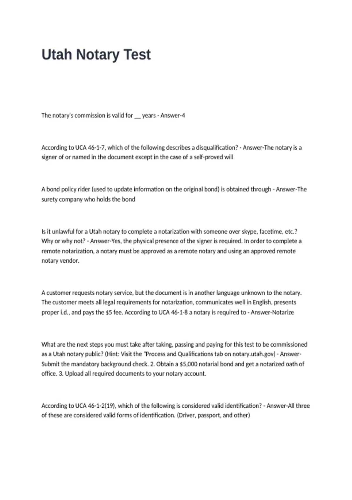 Utah Notary Test