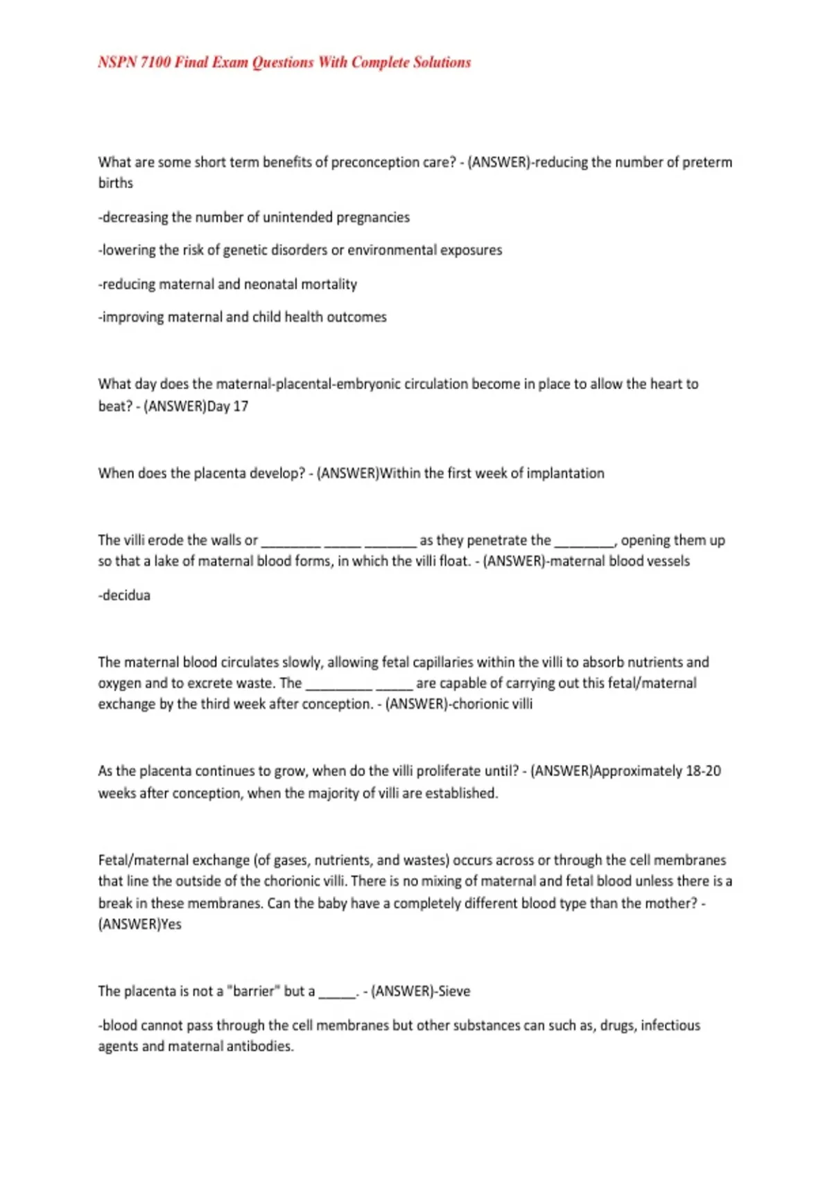 When does the placenta develop? - (ANSWER)Within the first week of implantation