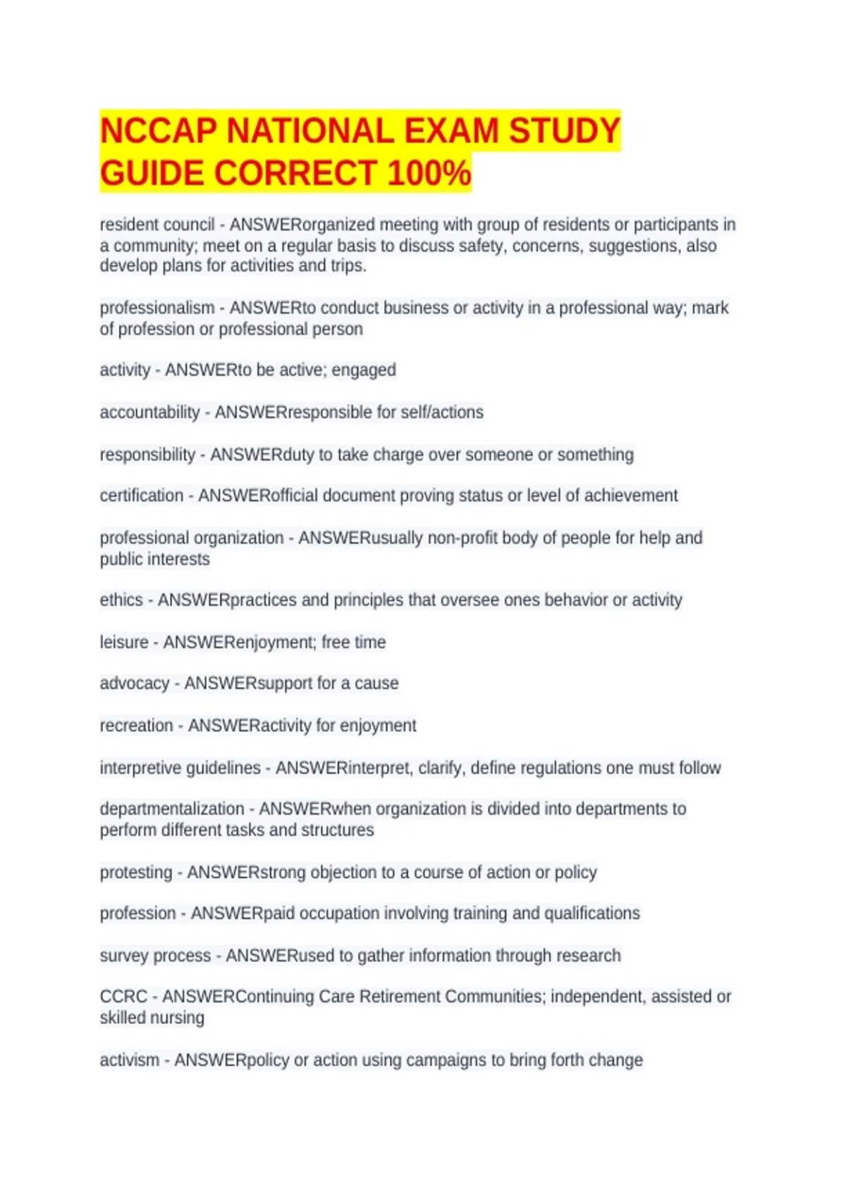 NCCAP NATIONAL EXAM STUDY GUIDE CORRECT 100%