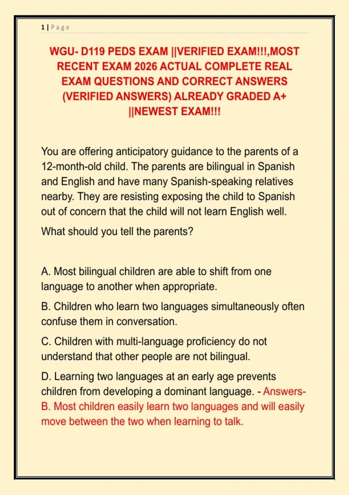 WGU- D119 PEDS EXAM ||VERIFIED EXAM!!!,MOST