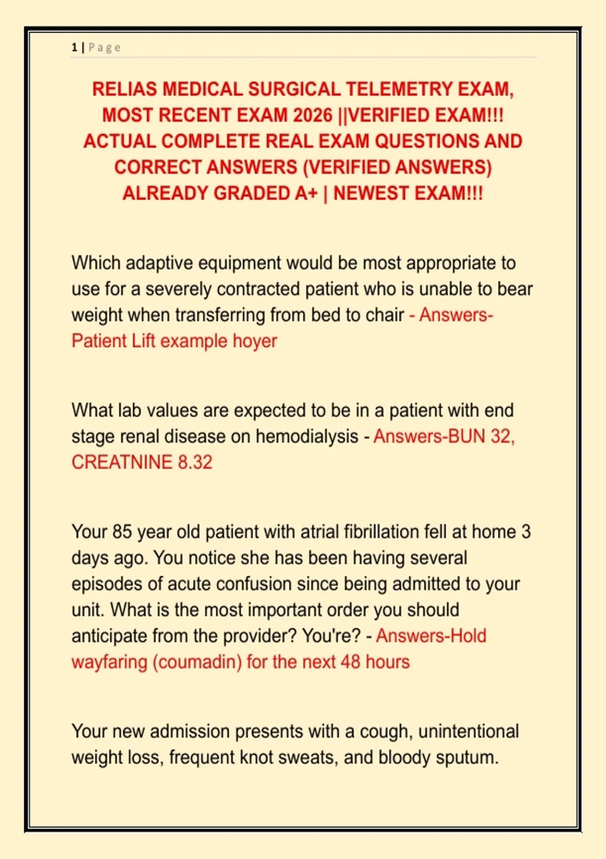 RELIAS MEDICAL SURGICAL TELEMETRY EXAM,