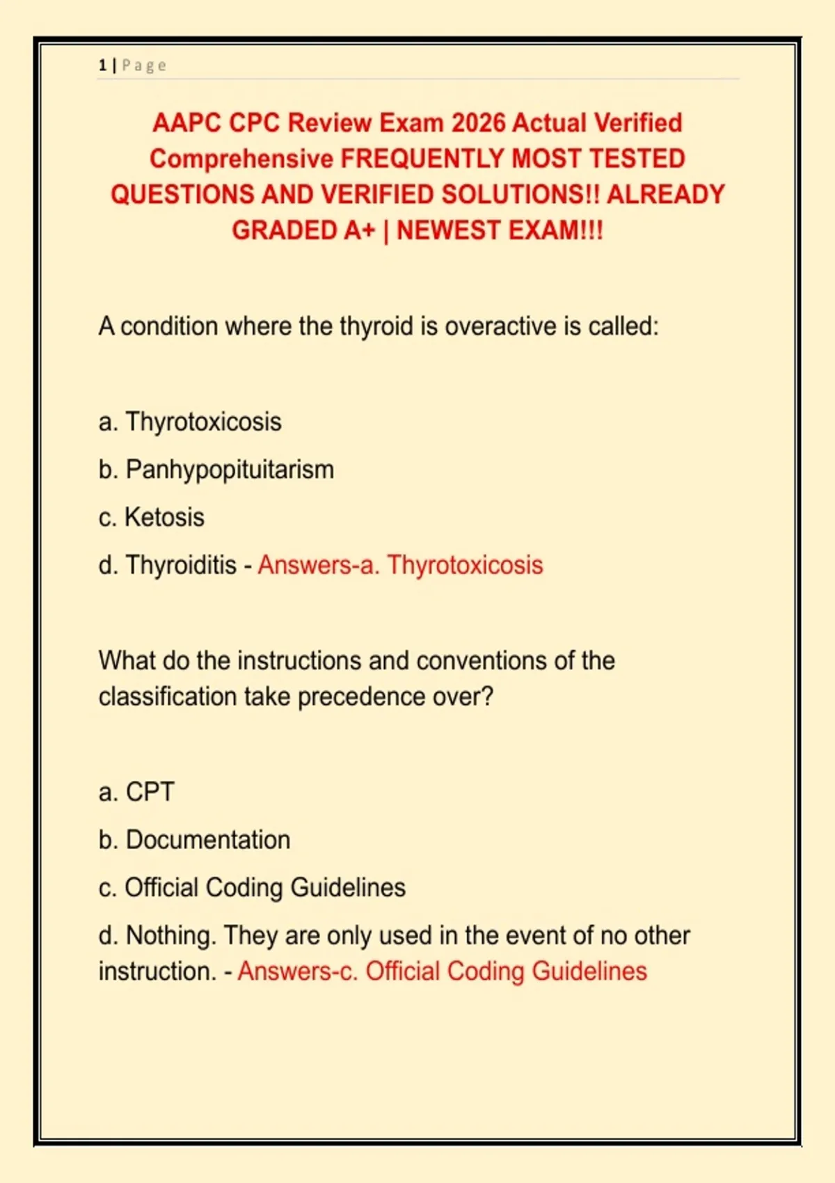 AAPC CPC Review Exam 2026 Actual Verified Comprehensive FREQUENTLY MOST TESTED QUESTIONS AND VERIFIED SOLUTIONS!! ALREADY GRADED A+ | NEWEST EXAM!!!