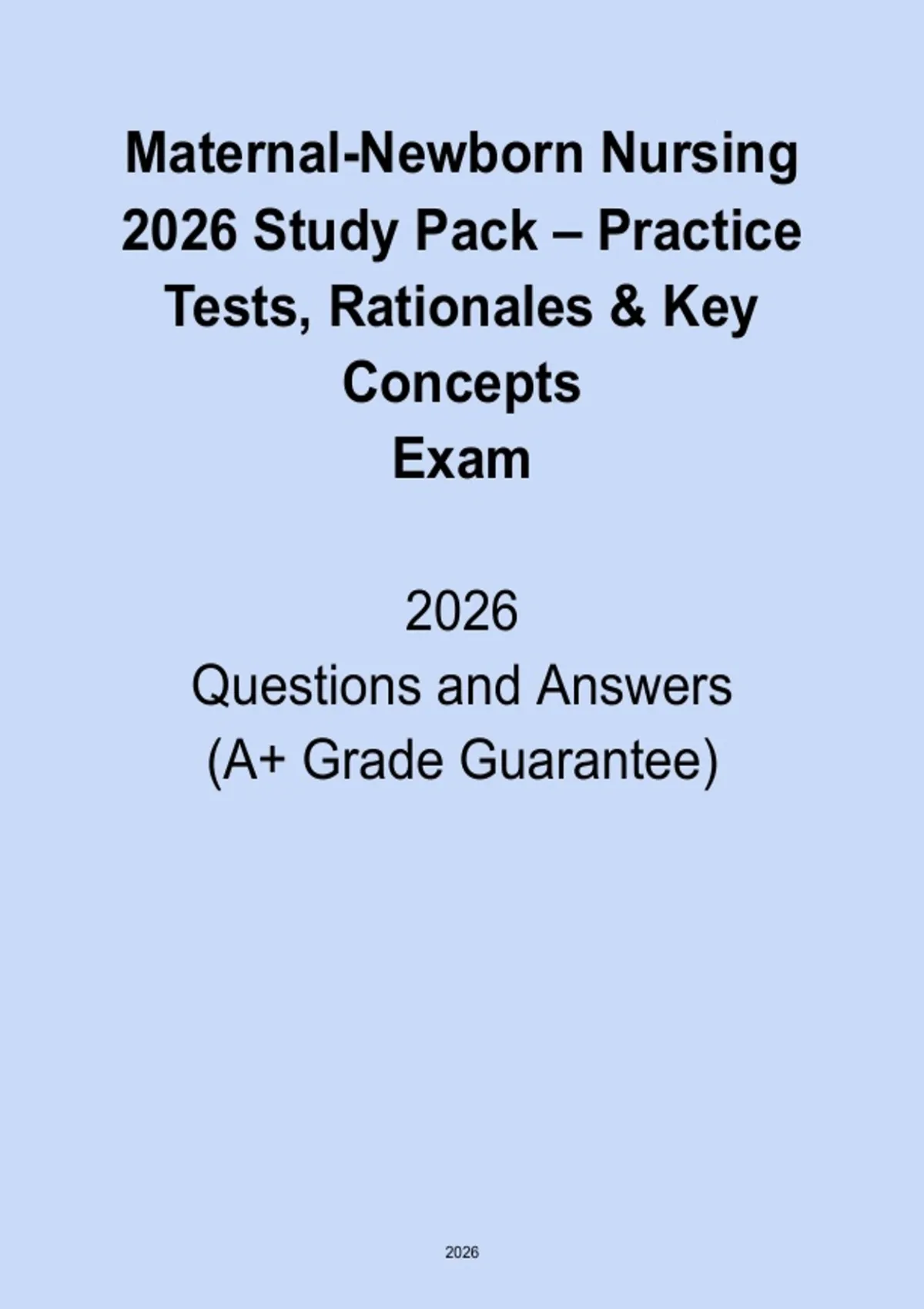 Prepare confidently for Maternal-Newborn Nursing exams in 2026 with this comprehensive study pack PDF featuring practice tests, detailed rationales, and high-yield key concepts. Designed to support nursing students and NCLEX preparation, this resource helps reinforce understanding of OB and neonatal care, strengthen clinical reasoning, and improve exam performance. Ideal for course exams, finals, and licensure readiness, this study pack provides structured, exam-focused preparation.
