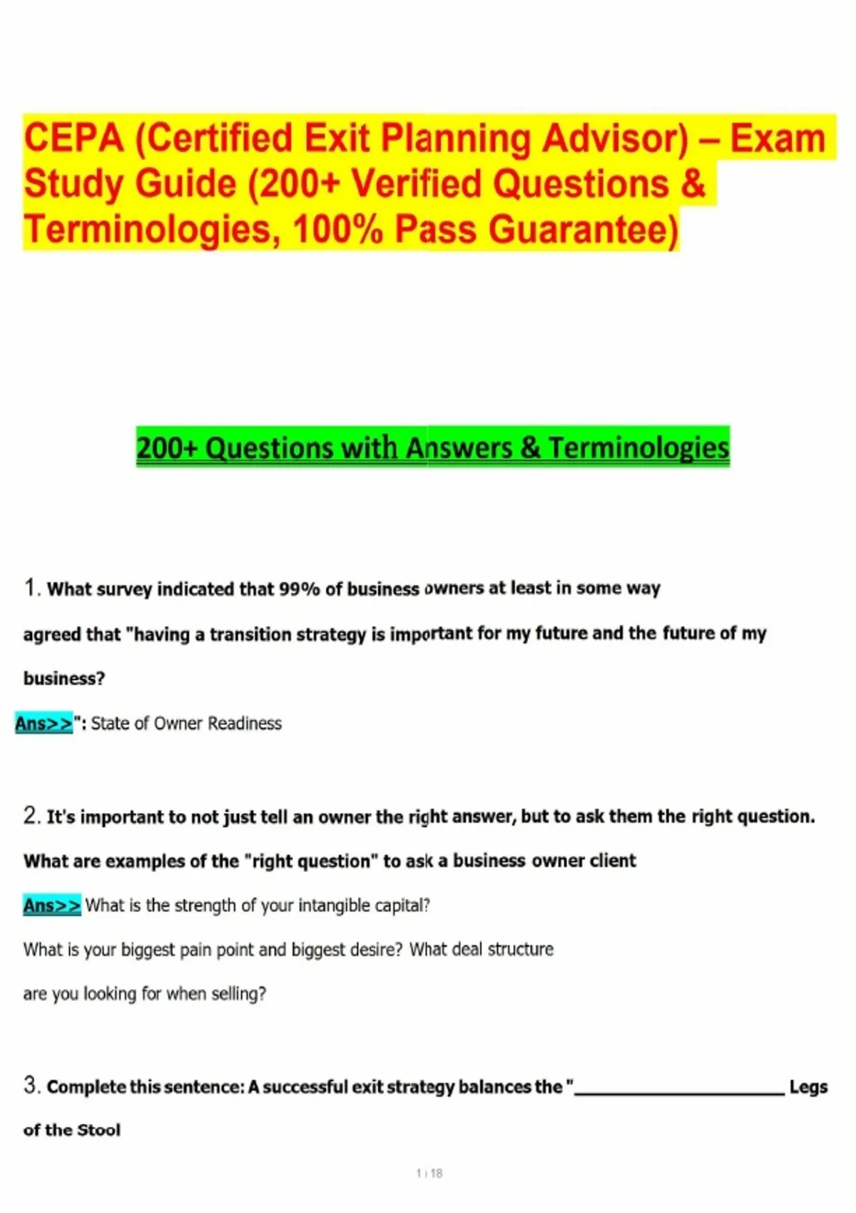 CEPA (Certified Exit Planning Advisor) – Exam Study Guide (200+ Verified Questions & Terminologies, 100% Pass Guarantee)CEPA (Certified Exit Planning Advisor) – Exam Study Guide (200+ Verified Questions & Terminologies, 100% Pass Guarantee)CEPA (Certified Exit Planning Advisor) – Exam Study Guide (200+ Verified Questions & Terminologies, 100% Pass Guarantee)
