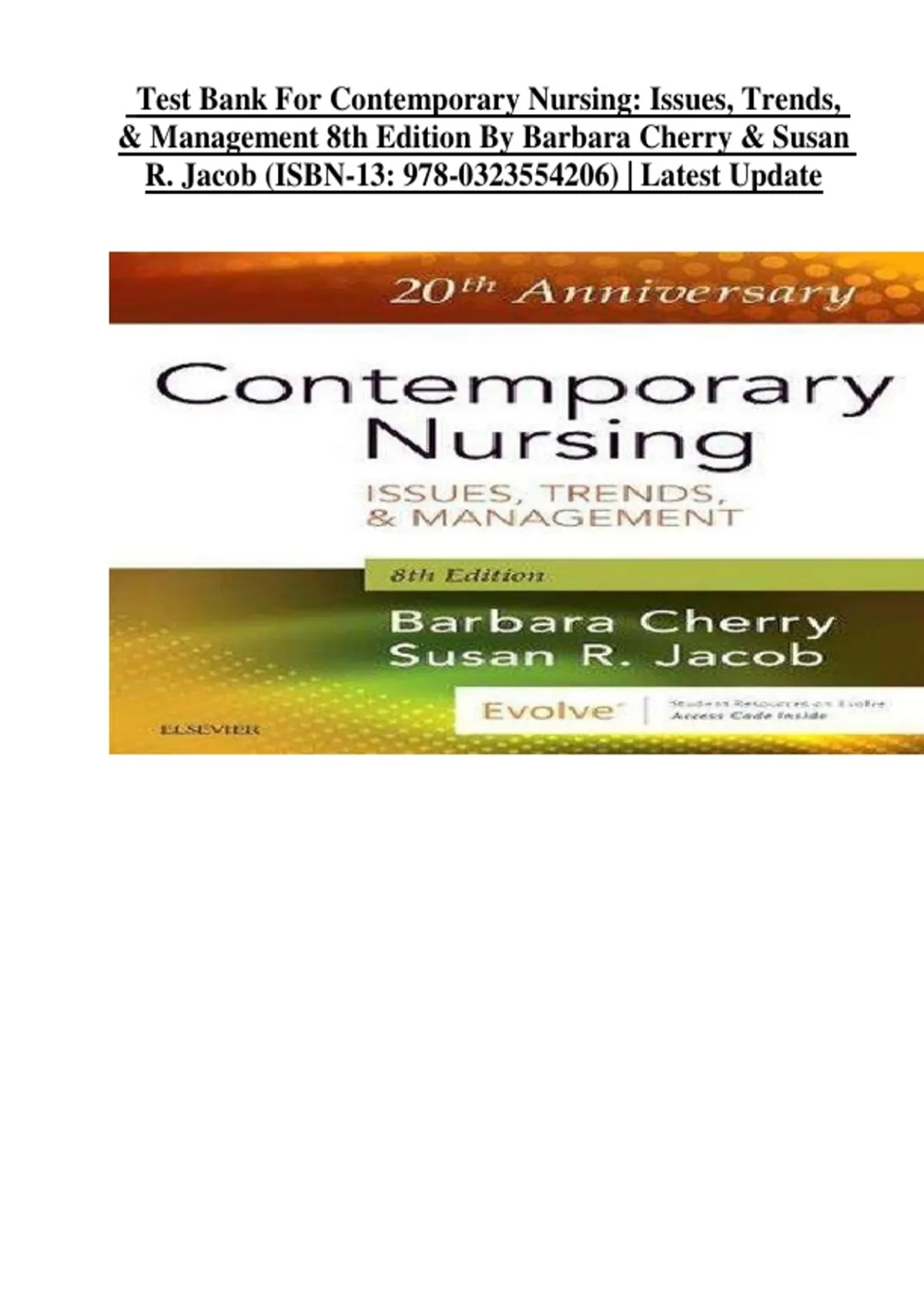 Cherry & Jacob: Contemporary Nursing: Issues, Trends, And Management, 8thedition