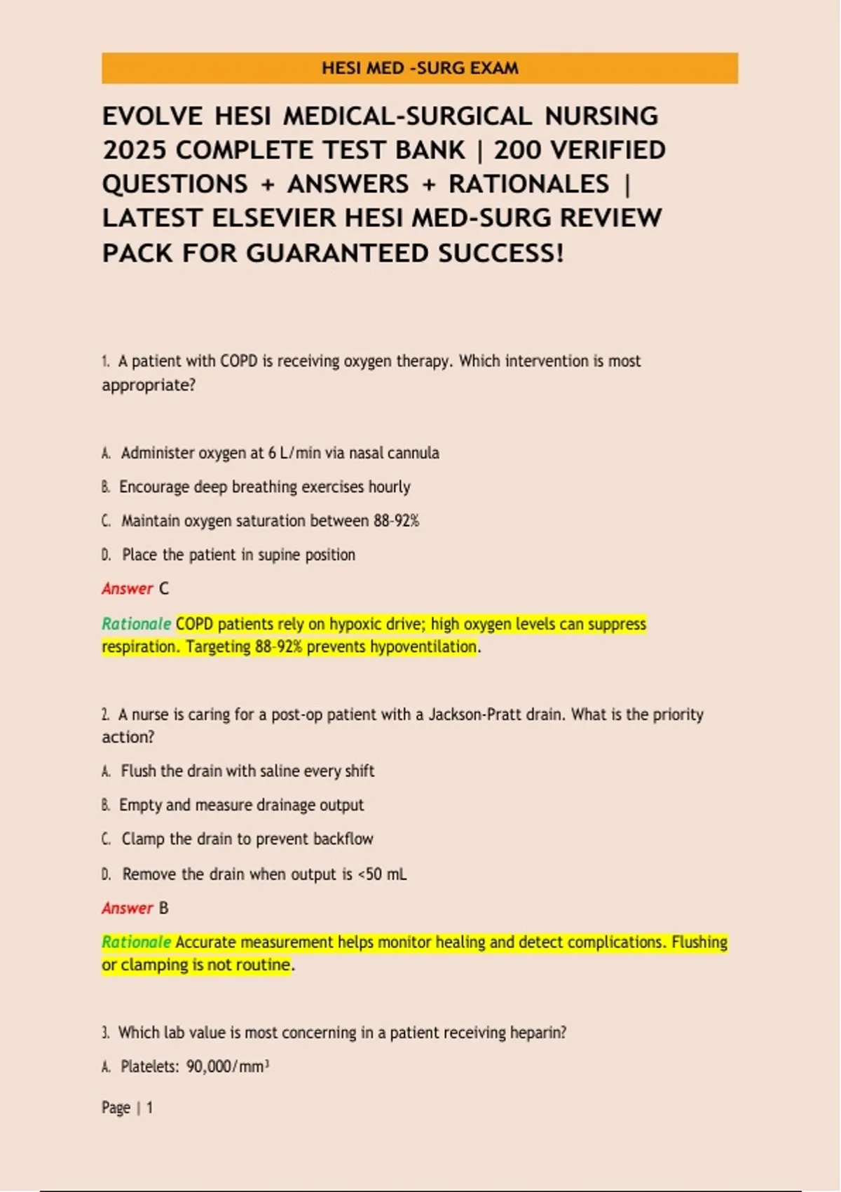 LATEST ELSEVIER HESI MED-SURG REVIEW