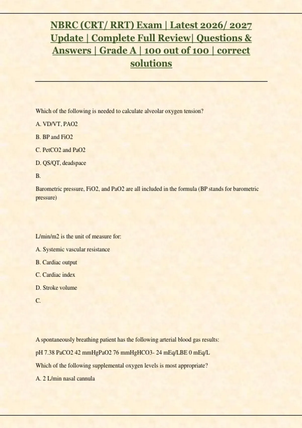 , NBRC (CRT/ RRT) Exam | Latest 2026/ 2027