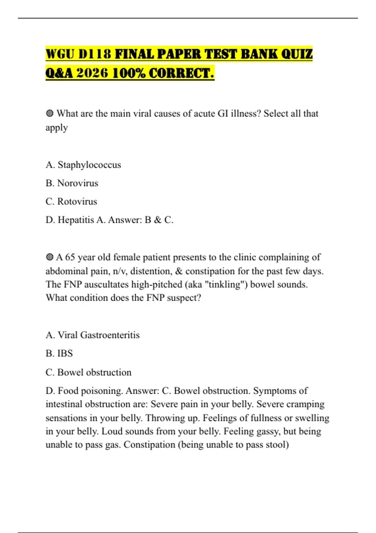 WGU D118 FINAL PAPER TEST BANK QUIZ Q&A 2026 100% CORRECT.