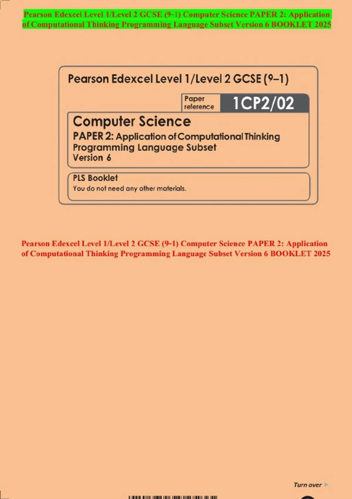 BUNDLE:::Pearson Edexcel Level 1/Level 2 GCSE (9–1) Computer Science 2025 Combined Question Paper and Mark Scheme
