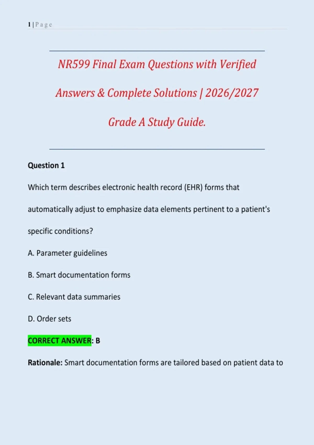 NR599 Final Exam Questions with Verified