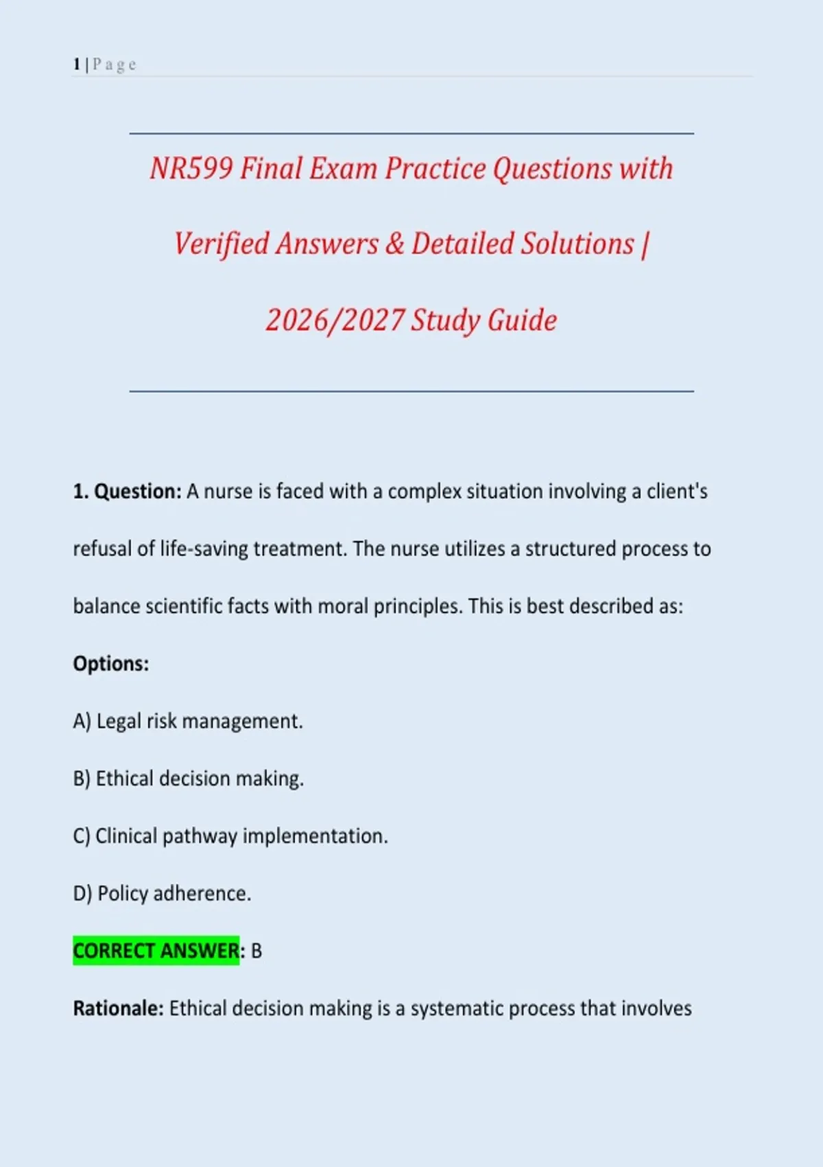 1. Question: A nurse is faced with a complex situation involving a client's