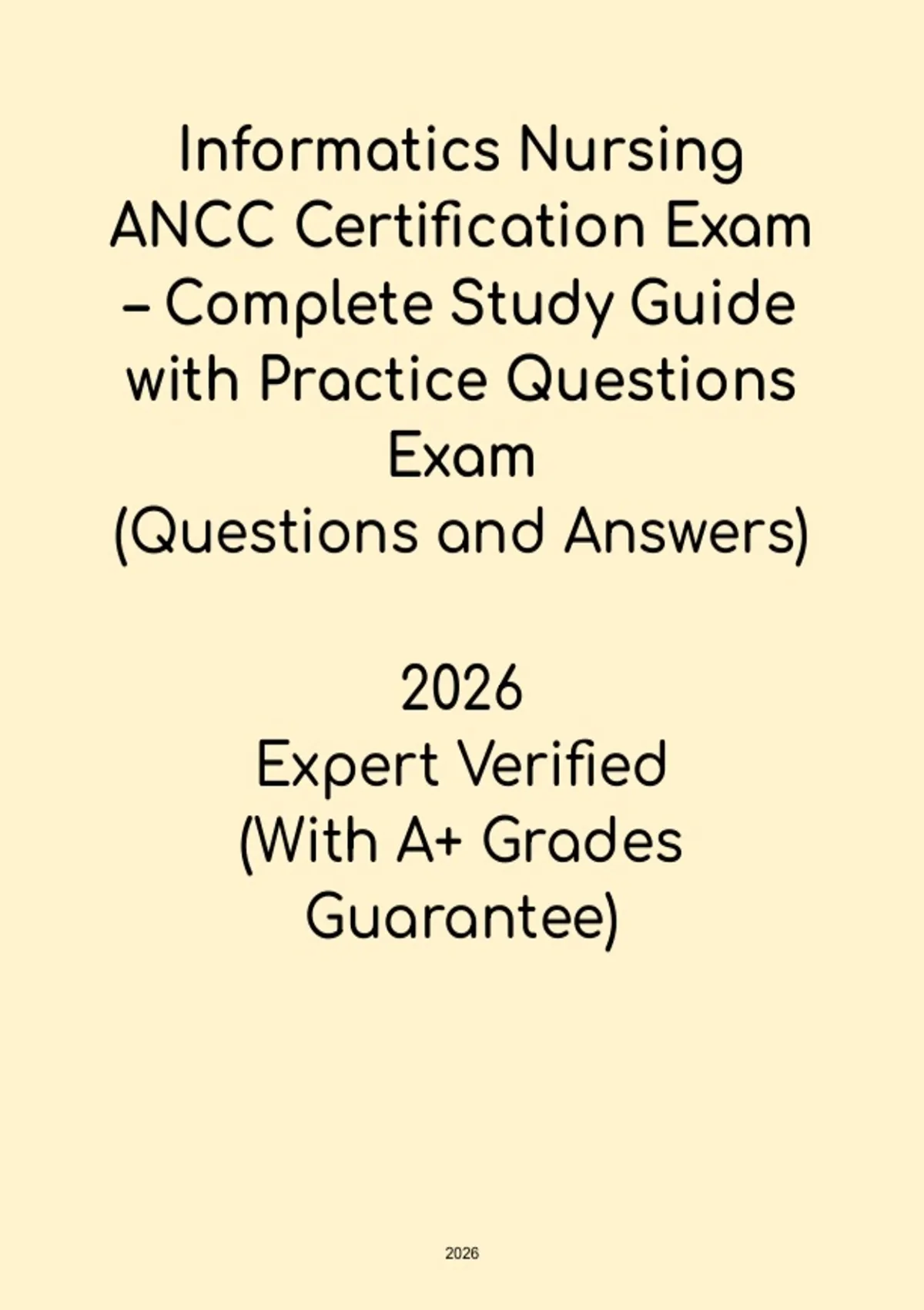 This Informatics Nursing 2026 ANCC Certification Exam Complete Study Guide with Practice PDF is a full, exam-aligned resource designed to help nursing professionals prepare effectively for the Nursing Informatics Certification Exam, covering key informatics topics such as data management, clinical information systems, interoperability, analytics, privacy and security, leadership, and evidence-based practice, and includes practice questions to reinforce learning and improve test-taking skills for certification success.