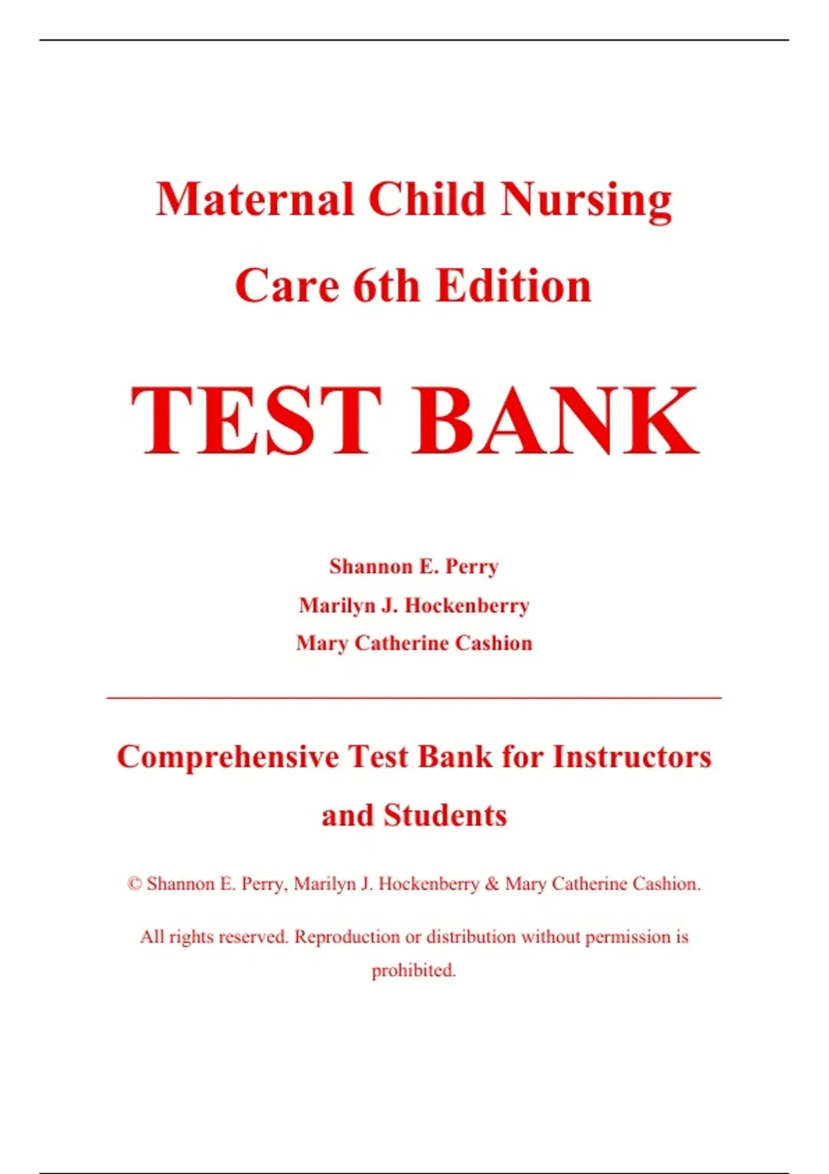 © Shannon E. Perry, Marilyn J. Hockenberry & Mary Catherine Cashion.