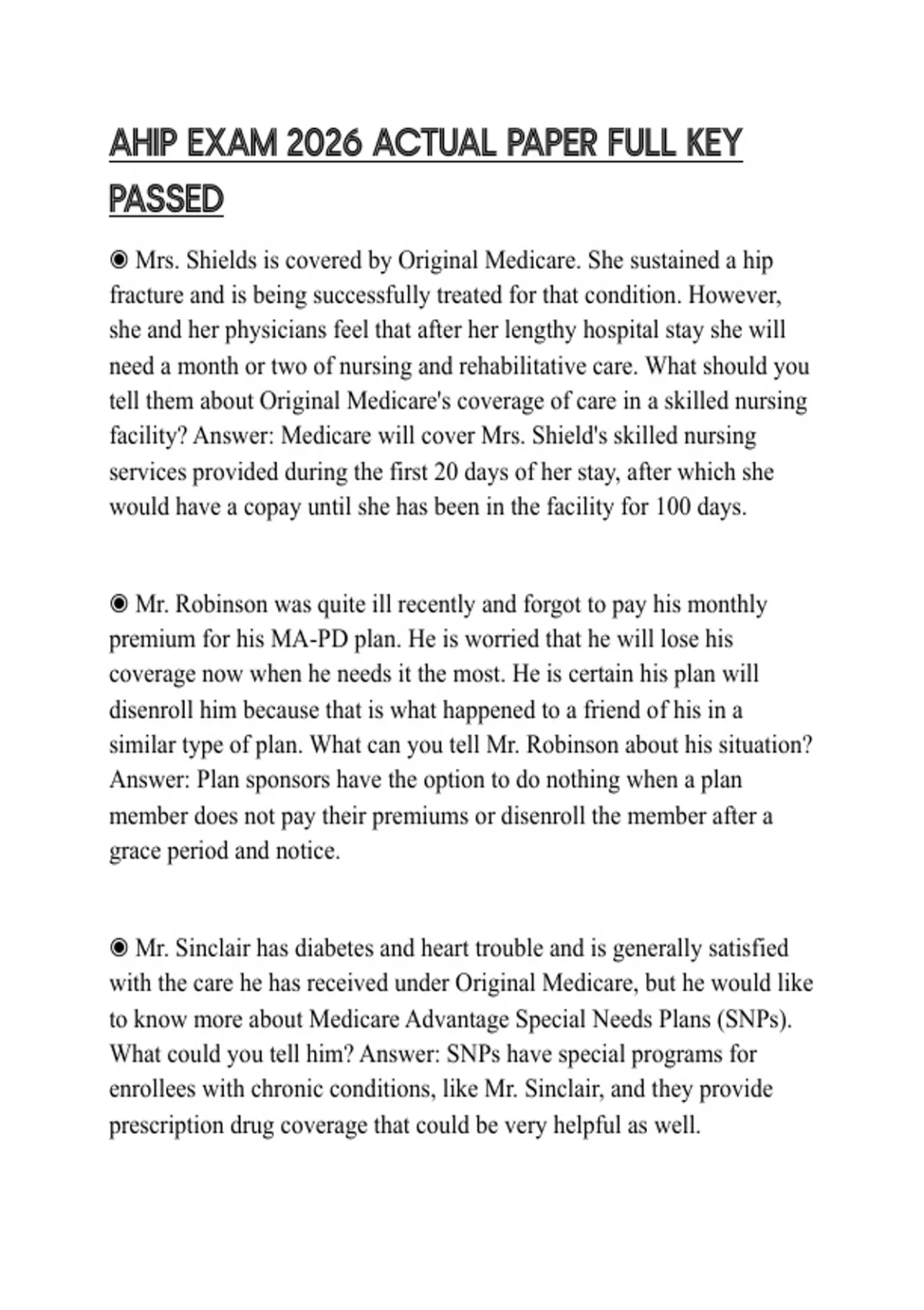 AHIP EXAM 2026 ACTUAL PAPER FULL KEY