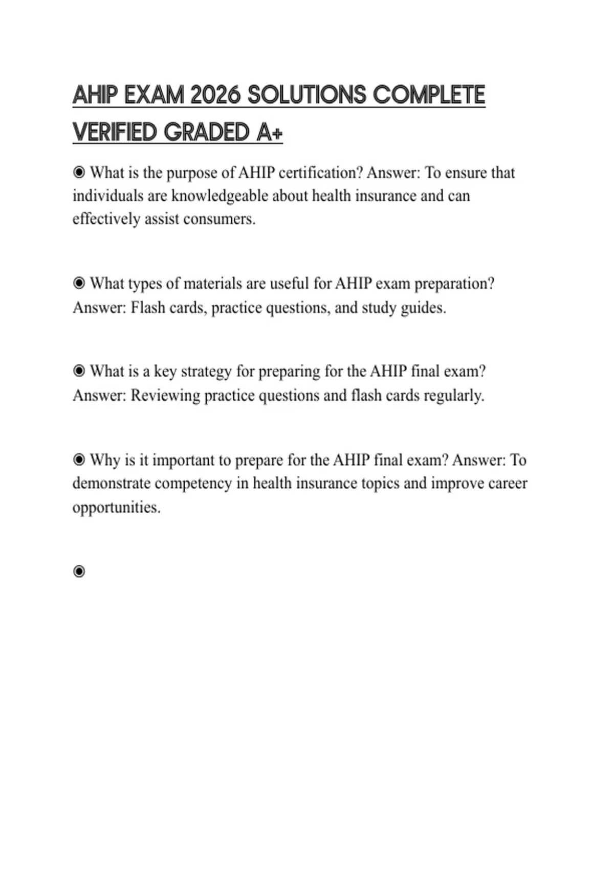 ◉ Why is it important to prepare for the AHIP final exam? Answer: To