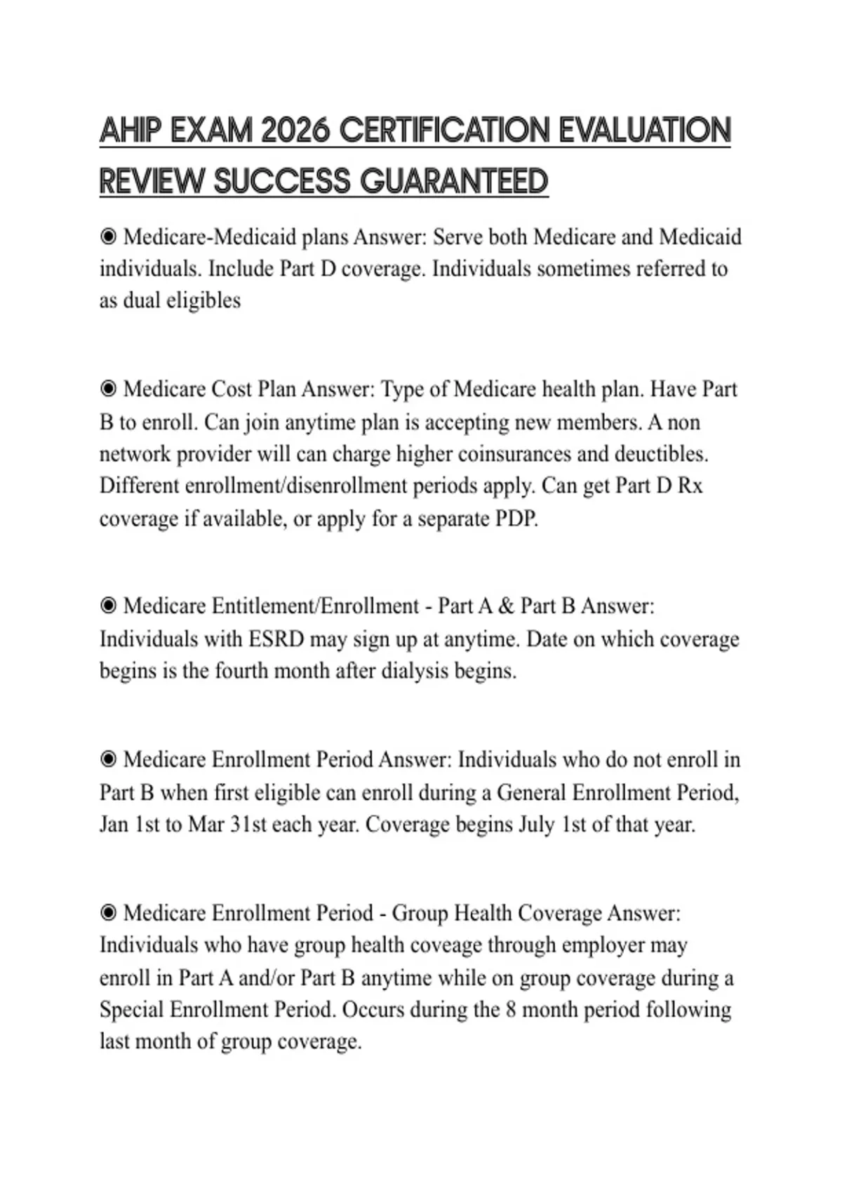 ◉ Medicare Enrollment Period Answer: Individuals who do not enroll in