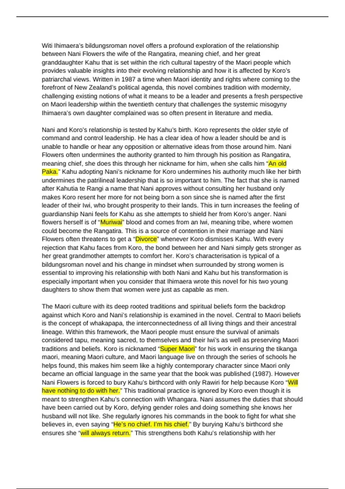 Summary IGCSE Whale Rider Grade 9 Essay Examples – Top Band Literature Model Answers