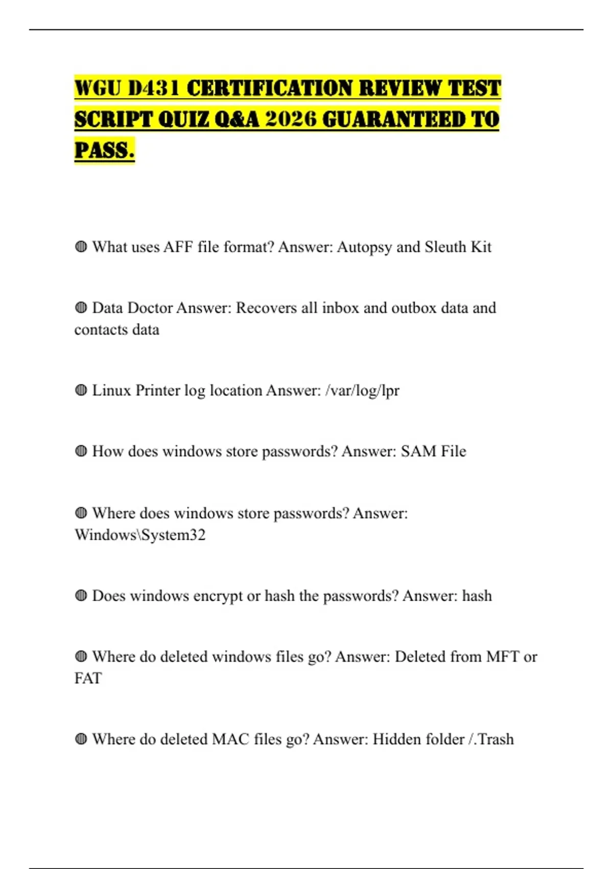 ◍ What uses AFF file format? Answer: Autopsy and Sleuth Kit