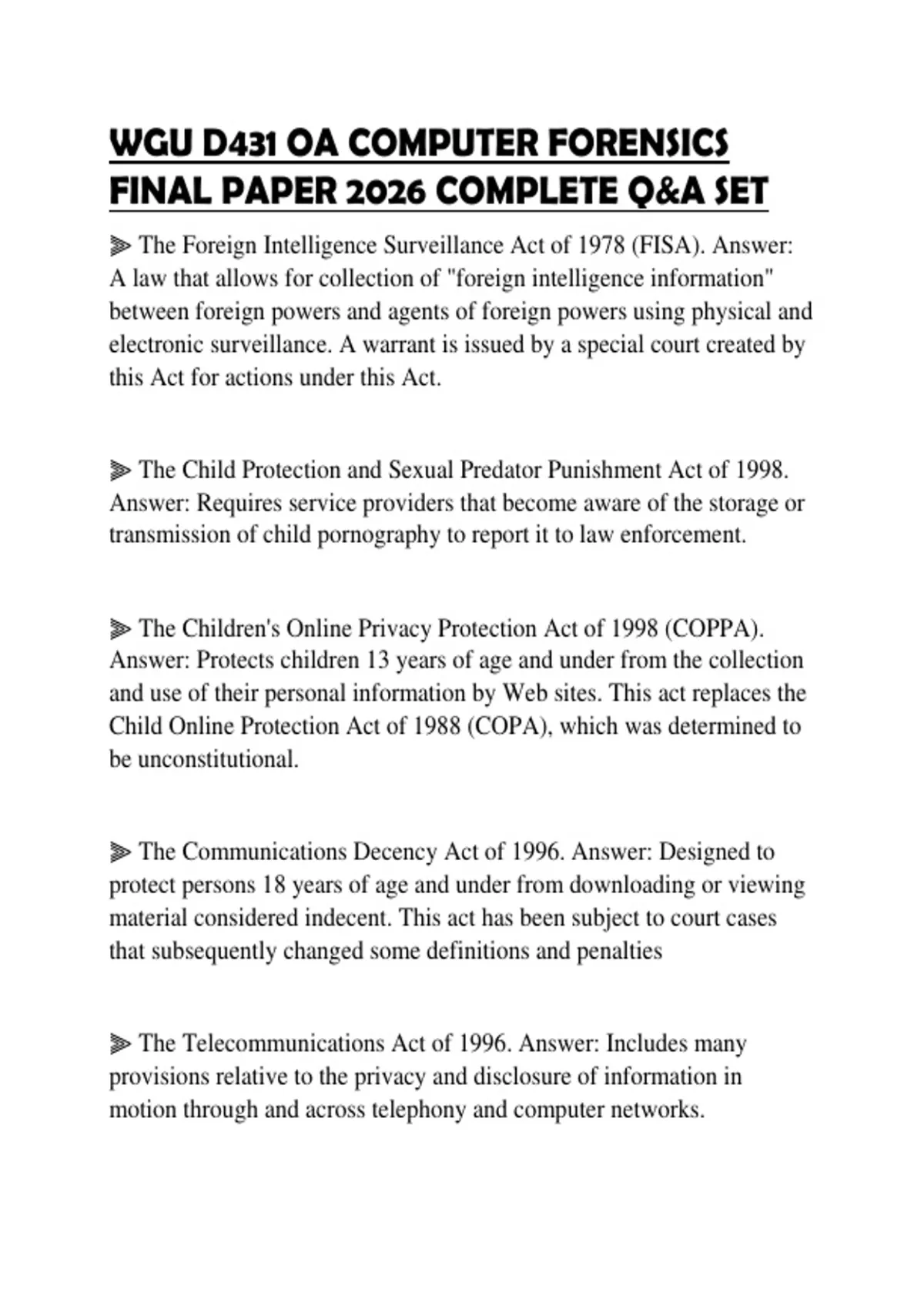 WGU D431 OA COMPUTER FORENSICS FINAL PAPER 2026 COMPLETE Q&A SET